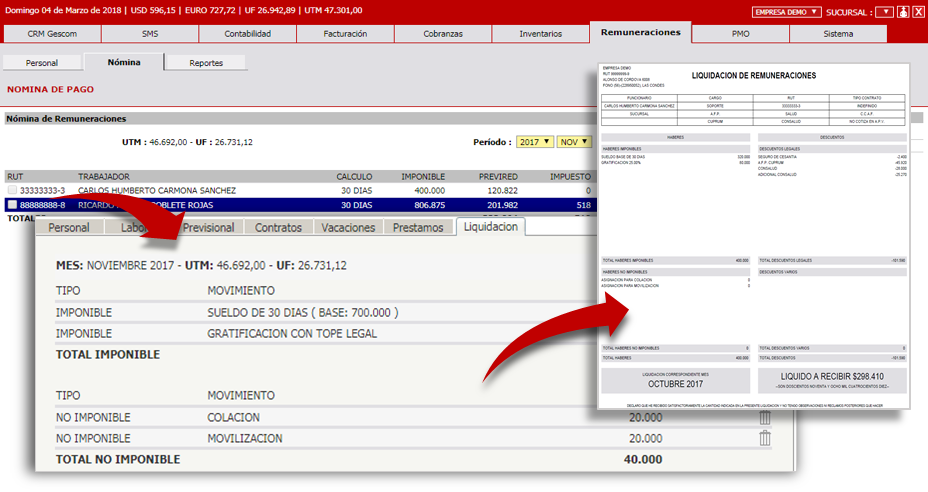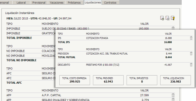 Ingresa tus trabajadores, asócialos a sus AFPs, Isapres o Fonasa y ya podrás obtener Liquidaciones, Certificados y Archivo Electrónico Previred. Incluso, podrás armar el LRE con liquidaciones emitidas y manuales. Además, SoftChile ERP genera contratos, calcula los finiquitos y periodos de vacaciones automáticamente.